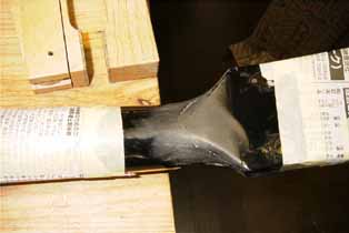 え~、すんなり進みます。前ページでとりあえずは接着できました。が、このままでは時がたつにつれ剥がれてしまうため、補強材を埋めていきます。(しっかりと圧着すればこの状態でもかなり持ちこたえる事ができます。実際に何ヶ月、何年も試した事はありませんが・・・)