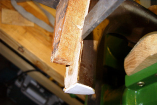 ダヴテイルジョイントの際しっかりと面と面で接着されるよう定規などを使い充分平面 などをチェックします。写真でお分かりになるでしょうか?真ん中に隙間が空いてます。