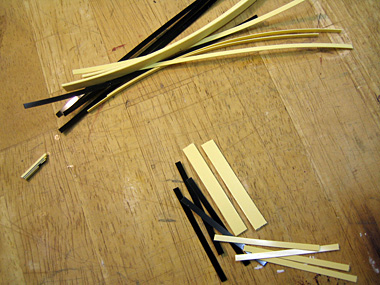 ↑↑いちばん外側のアイボリーを貼る時には、はみ出した接着剤を綺麗に除去します。こうしないと接着剤の残りカスの上にバインディングが乗り、側面から見た時に隙間が空くことになりかねません。