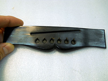 ところが今回は剥がしてみて分かったのですが、エボニー材のブリッジでした。