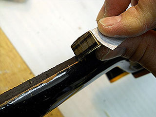 が増えます。が、長年やっていると「指板の端・丸み具合」を見ただけで「ああ、これは(フレット交換後も)あまりフレット端は立てられないな」とか、「指板の側面部を少し多めに削る事になるな」とか判断できます。