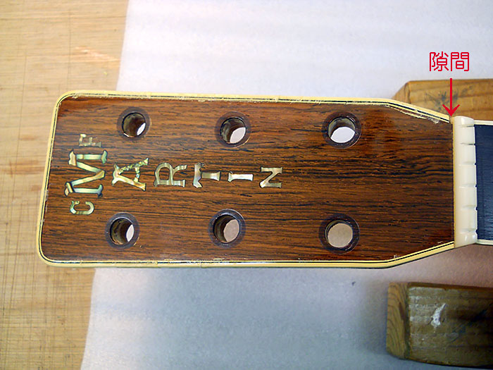 *もしこれが、ここまでひどくなく、他はわりとしっかり接着されているようであれば、"くびれ"部分でバインディングを「カット・切る」して接着、後にできた隙間にはエポキシで埋め、完成となります。塗装はしません。