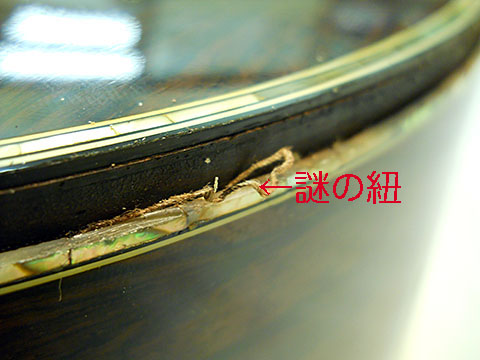 ←ギターの内部ですが、角っこには、このようにライニング材というものを貼り「側板とバック板(トップ板も)」を接着しています。