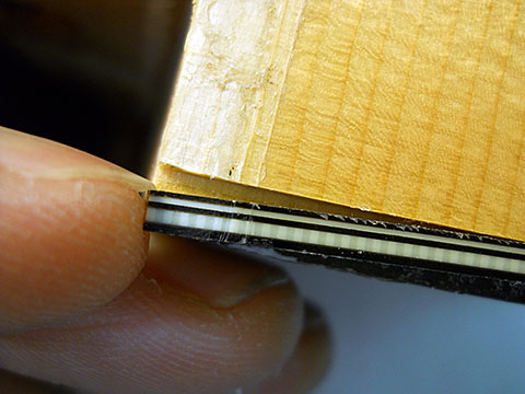 その時に注意しなければいけないのは、あくまでバインディングのみをカットする事。木材部分に刃が食い込んだりキズを付けたりしてはダメです。