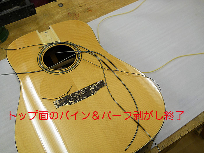 ナットとペグを取り外し・・・・フレットも抜いていく・・・・
