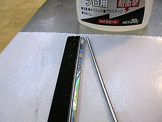 ←ピッタリ合わさるかどうか確認中・・・・厳密に言えば当然ここも直角ではない。なのであとから施す貝・パーフを微調整する。