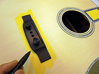 ブリッジを仮固定し、ボールペンで実寸を書き、その実寸より少し小さめの範囲をカッターでカットして完了。