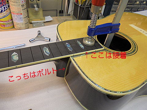 ネックを取り付けるとクランプで固定しやすくなるので。。。そうした理由から。