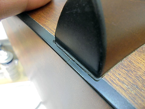 ジョイント部付近はこんな感じですが、Taylorはボルトジョイントですからこうした隙間ができるのはとくに問題ありません。あとから分かった事ですが、予想どおりボルトがすこし緩んでいました。ボルトジョイントのアコギは(ブリードラブもそうだった)よくボルトが緩んでいる事が多いので、新品購入後2〜3年を目処に一度チェックしたほうがいいかもしれない。