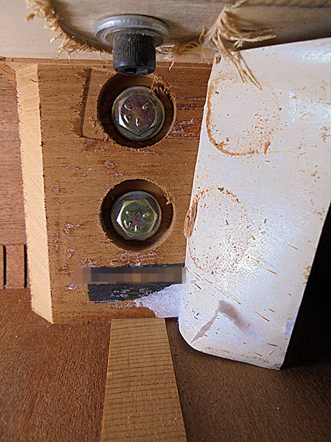 ネックブロックはこのように「ラベル」が貼られており、↓↓ 普段はボルト部分が見えないようになっています。