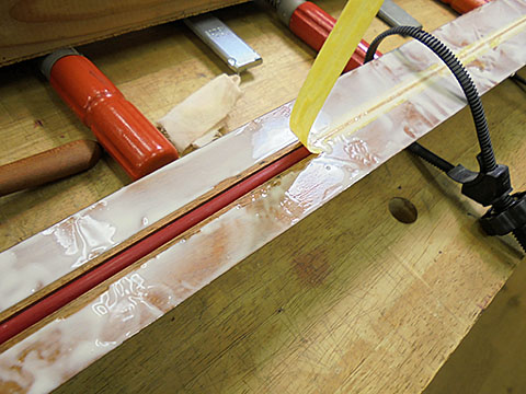 ←タイトボンドを使用しますが、塗布するまえにあらかじめ接着面を水でかるく濡らしておきます。こうする事で接着剤が馴染みやすく、効果的です。