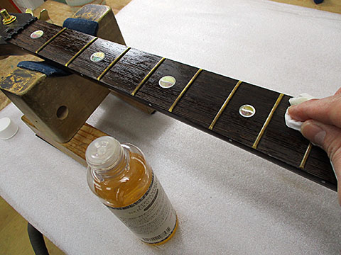 と言うことで、レモンオイルで保湿してあげたあと↓ (かるく)アイロン修正をします。