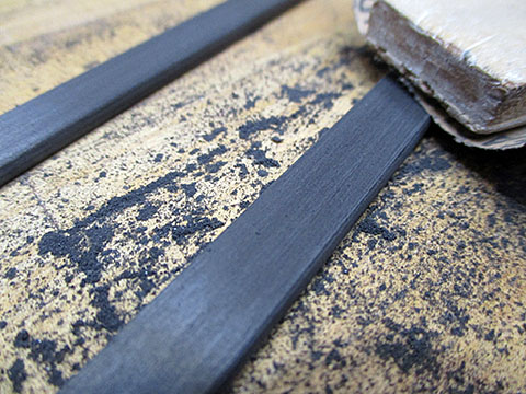 カーボンロッドはそのままでは表面がツルツルなので、粗めのペーパーで研磨します。